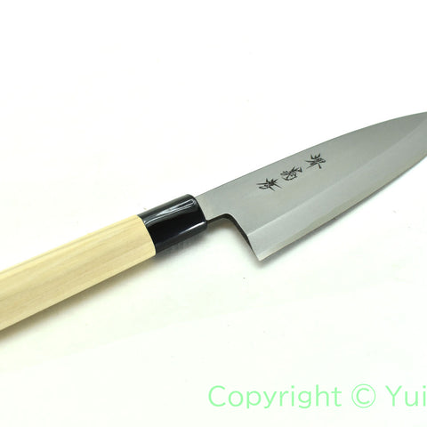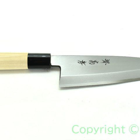 Deba Knife with thick single bevel blade is indispensable for cleaning fish.It is used to cut through hard bones and also to fillet the fish. Thus it is constructed with a thick spine while the tip is thin with an extremely sharp edge.