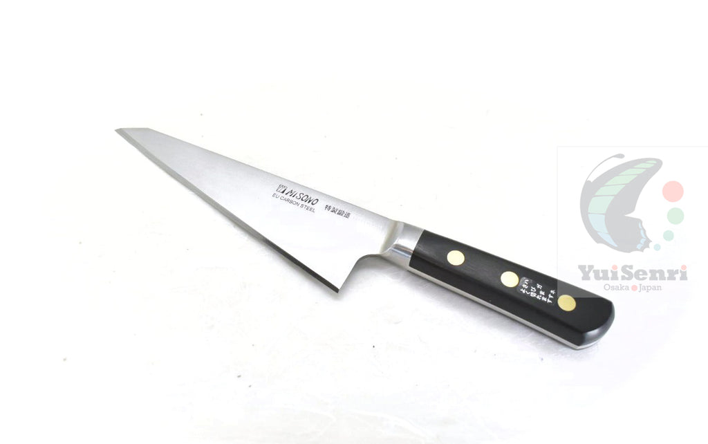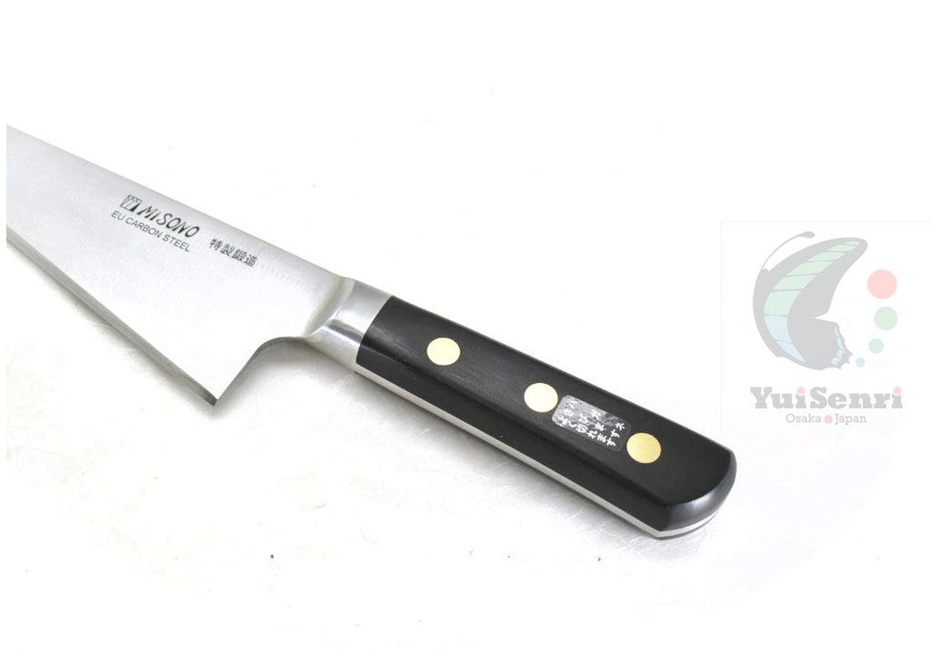 This is a Misono Japanese Professional Poutry Knife, called Garasuki (or known as Garasaki) for Left Handed, manufactured from High Quality EU Swedish Carbon Steel by Misono Cutlery in Seki /Gifu prefecture.