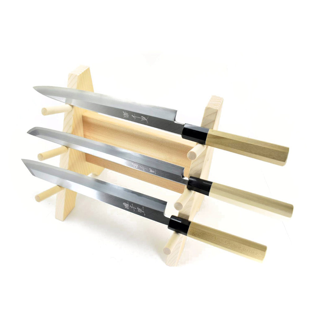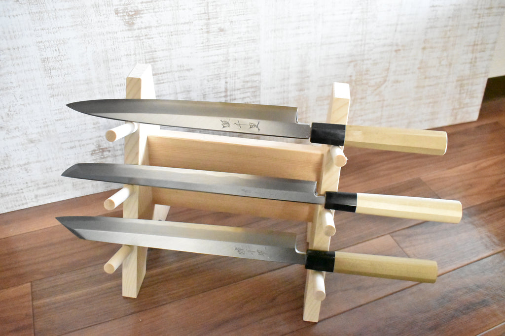"Wooden Knife Stand", is made of Spruce, originally designed for display in the kitchen or restaurant for Professional Chefs as well as for private kitchen.