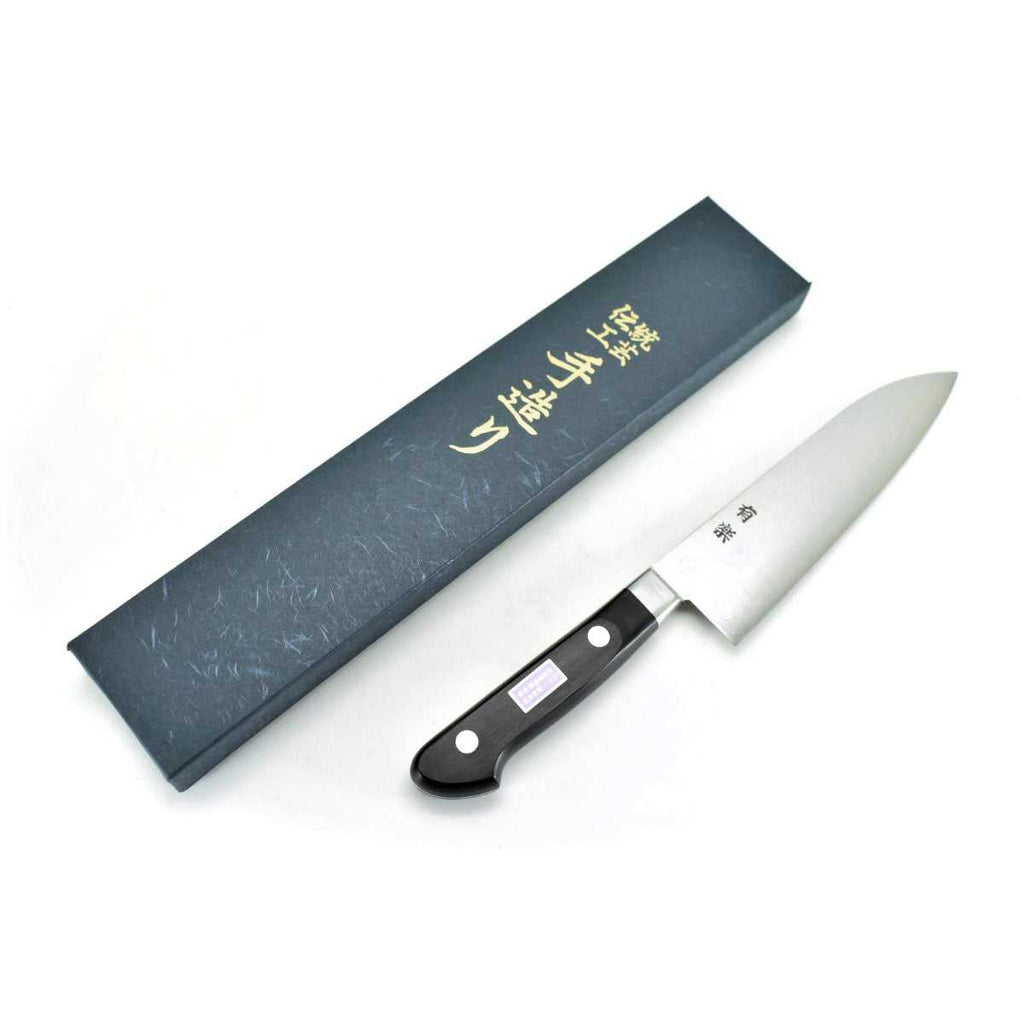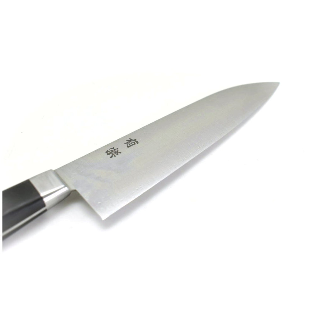 YUURAKU Pure Carbon(White Steel #2) Santoku is the Sakai-made Professional knife from KISHI Cutlery, who makes incredibly high performance knives out of Sakai, Osaka. Their knives are famous for thin blade and superb geometry. The blade has a slight convexity making the cutting feel very enjoyable.